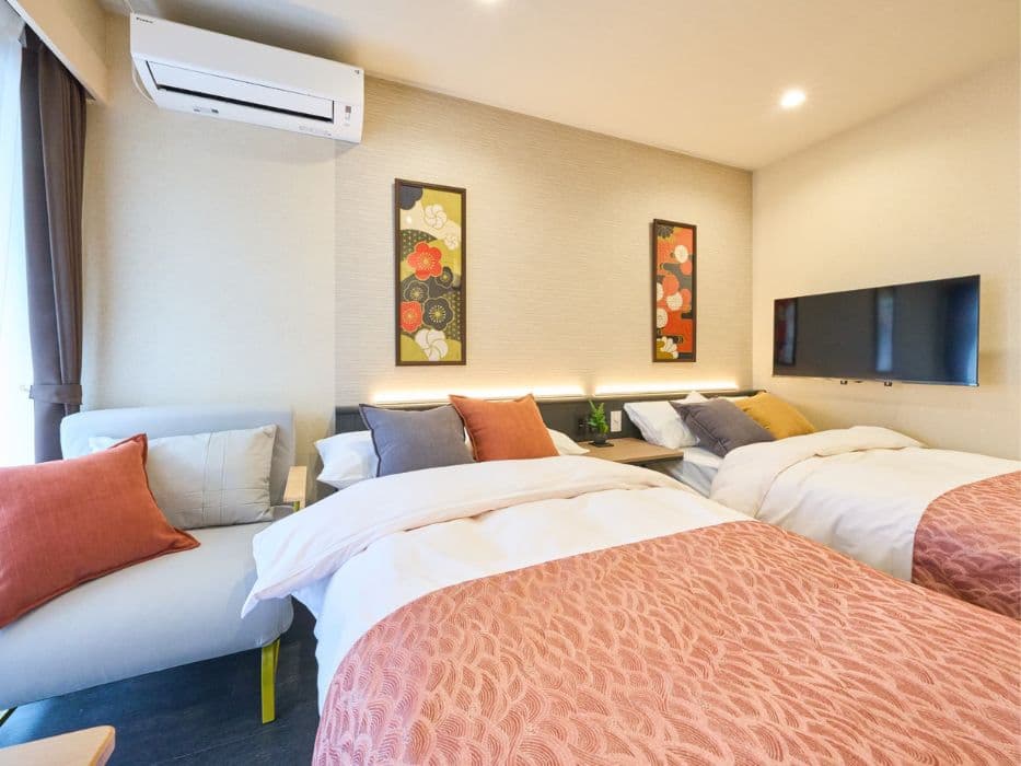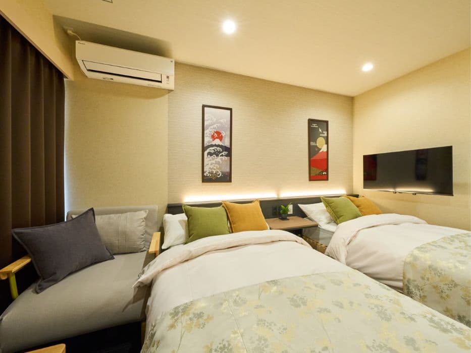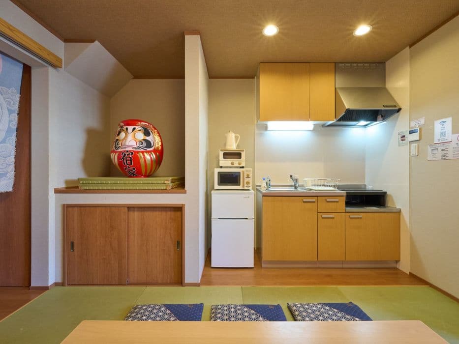 「宿家」のホテルタイプは、1室2名から8名までご利用いただける多様な客室を備えており、家族連れ、グループ旅行、社員旅行、出張、長期滞在など、さまざまなシーンに最適です。各客室にはキッチンや洗濯機が完備されており、快適で便利な滞在をお約束します。畳敷きの部屋や障子越しに差し込む柔らかな光が、和の心地よさを演出し、心安らぐひとときを提供します。また、浅草寺や仲見世通りへのアクセスも良好で、観光の拠点としても最適です。